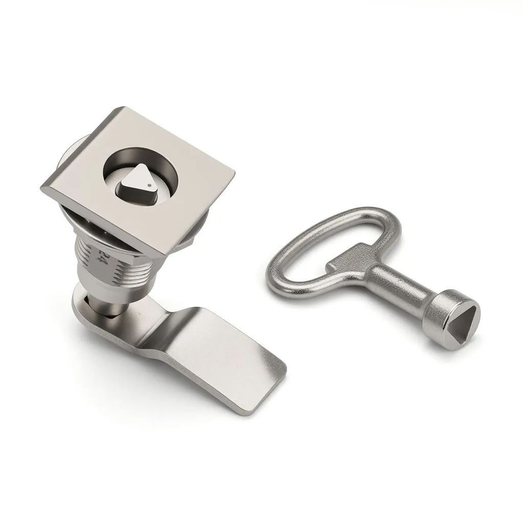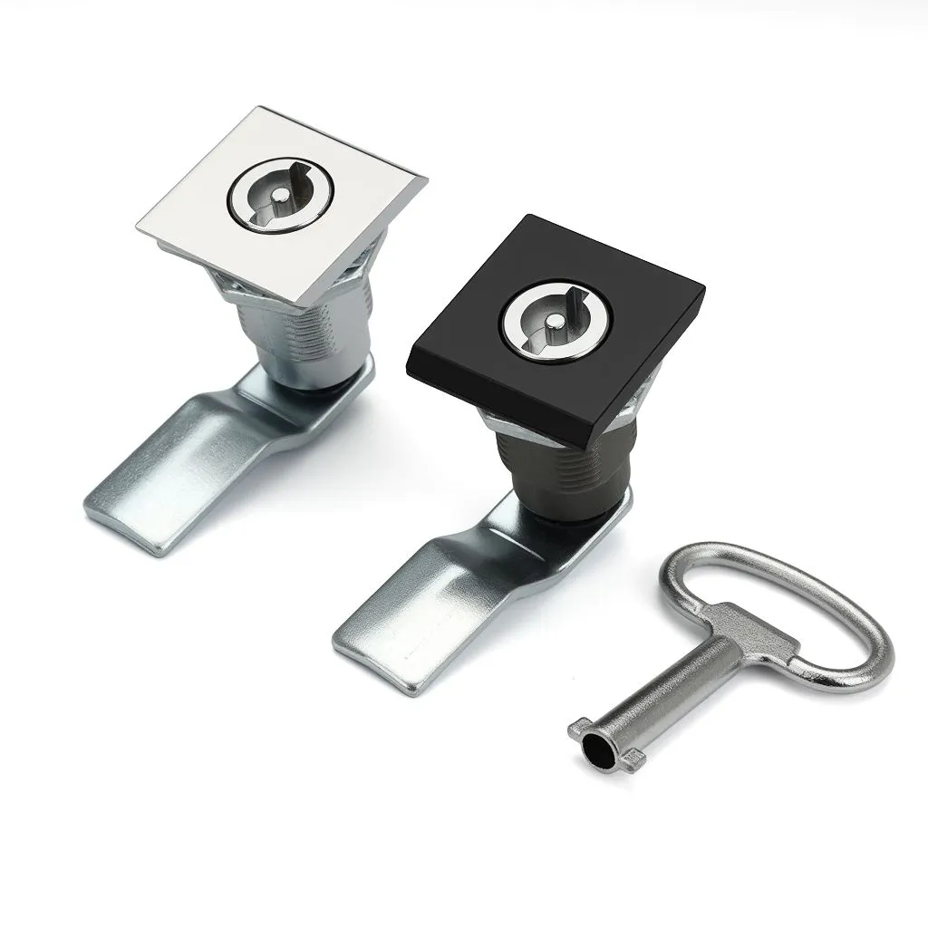 ลูกเบี้ยวล็อคกุญแจแบบแบนจะทำงานโดยการหมุนกุญแจ ซึ่งจะขยายหรือหดสลักเพื่อเปิดหรือปิดประตูตู้ ประแจสองคมช่วยให้การทำงานตรงไปตรงมาและตรงตามข้อกำหนดด้านความปลอดภัยมาตรฐานสำหรับสภาพแวดล้อมทางอุตสาหกรรม พื้นผิวตัวล็อคเคลือบด้วยสีฝุ่น ชุบโครเมียม หรือผ่านการขัดเงา ซึ่งทำให้ทนทานต่อความชื้นและฝุ่น ล็อคนี้ใช้ได้กับตู้หลายประเภท โดยเฉพาะสวิตช์ อุปกรณ์ และตู้โลหะ